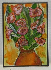 Stone urn pot with gladiolus oil painting 8x10 Print