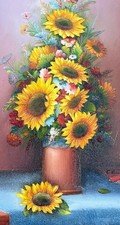 Vintage Oil Painting Still Life Vase Urn Yellow Sunflowers Art Signed C Benolt
