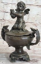 Art Deco/Nouveau Hot Cast Angel Baby Infant 100% Bronze Urn Sculpture Decor
