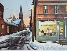 William Nelson The Barber Shop Serigraph Hand signed US Artist lincoln ave. art