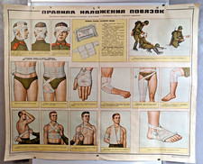 cold war propaganda poster / military medic bag / ak-47 assault rifle / 1977