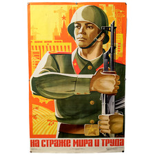 1970 Soviet Army Propaganda POSTER - always on guard for peace! - 36"x24" -AK 47