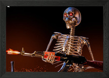 Skeleton with AK-47 Firing Framed Wall Art Poster Canvas Print Picture