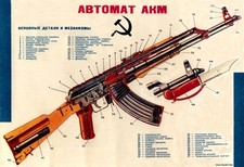 Poster Russian AK-47 Kalashnikov Rifle Manual Exploded Parts Diagram