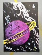 OUT THERE - ACEO sketch card signed retro sci-fi comic original illustration art