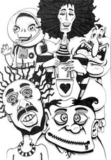 Weird Ink Sketches #8 - 10x7" Original & Random Hand-Drawn Caricature Collage