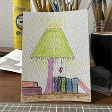 Original Lamp Drawing Hand-Drawn Illustration Art Books Heart Cartoon on Paper