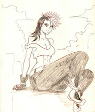 Pinup Wars: Andromeda sitting Pencil Original [Not A Print] Signed