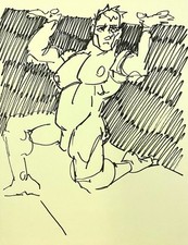 American Comic Gay Interest Signed Original Illustration On Paper 9x12 Big Man