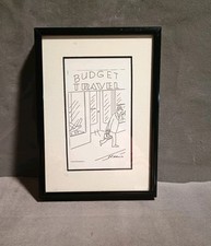 Vintage 4 X 6 Framed & Matted Comic BUDGET TRAVEL By Ed Arno Illustration