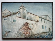 Mid Century Modernist Minimalism Oil Painting Town Estepona Costa Del Sol Spain