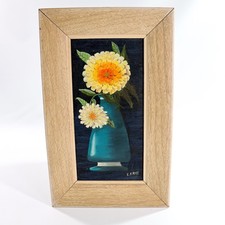 Vintage Original Painting 1960s MCM Zinnia Florals in Vase Mod Kriz Midcentury