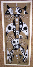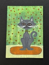 ACEO Original Acrylic Mini Painting Of A Mid Century Modern Cat