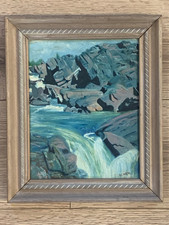 Mid Century Oil Painting on Canvas Artist Signed Mill by Stream 23.5" x 19.25"