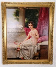 Vintage Mid-Century Oil Painting – Sexy Woman Pinup Classical
