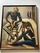 Mid Century Modern Painting Portrait Dancers Performers Beatnik Large Listed