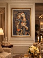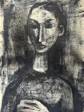 MID CENTURY PAINTING WOMAN BIRD CUBISM ABSTRACT MODERNISM VINTAGE FAMOUS ART