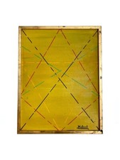 Striking Vintage mcm style Abstract Op Art Geometric Painting in greens & yellow