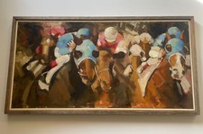 Mid Century Modern Painting Horse Race Track Jockey Large Vintage Patricia Alley