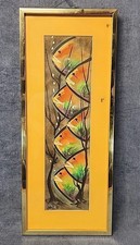 Vintage Abstract Mixed Media Painting Signed Framed Mid Century Style