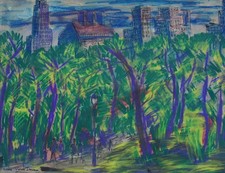 1948 Mid Century Mixed Media Painting of Central Park by Artist Vincent Drennan