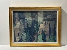 Mid Century Painting Cubist Cubism Abstract Kermit Epperson Modernist Rooftops