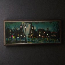 Mid-Century Modern Lighted Carlo of Hollywood Artwork Depicting A Paris Square