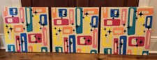 Three Canvases Painted In Acrylic In Mid Century Style Modern Colors