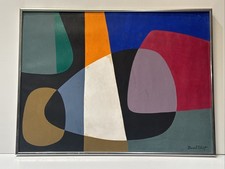 Oil Painting Abstract Composition Danish Mid-Century Modern Art Sixties