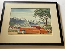 Vintage 1970's Pop Art Family And Antique Car Watercolor Signed Edith Moore