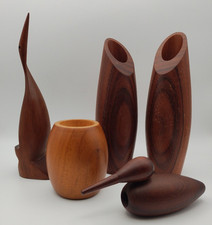 Teak Lot Egret Carved Bird Vases Minimalist Mid-Century Modern Danish? MCM Vtg