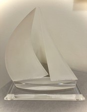 Vintage Signed Ryzza Larson Lucite Acrylic Sailboat Sculpture Frosted Sail 12"