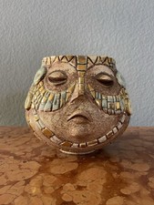 RARE SASCHA BRASTOFF TIKI FACED VASE CANDLE HOLDER BOWL GOLD MOSIAC