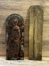VINTAGE COPPER PLATE REPOUSSE WALL ART ONE SIGNED MCM EMBOSSED