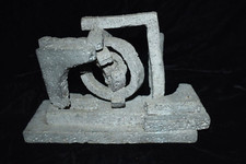 Mid Century Modern Abstract Cement Concrete Art Sculpture Unsigned