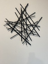 Mid-Century Modern Geometric Metal Wall Art | Abstract Rod Grid 24.5” x 25.5”