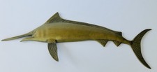 Lg 19" Vtg Mid Century Modern Brass Blue Marlin Wall Sculpture MCM Nice Patina