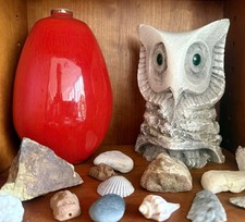 Vintage Mid Century Modern MCM Brutalist Owl Sculpture Stone With Glass Eyes 60s