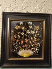 Antique Art Deco Seashell Art Floral Bouquet Framed 12.75"x10.75"