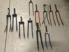 Antique Bicycle forks. Some are Schwinn, the rest are unknown.