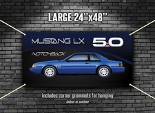 Mustang LX Fox body Notchback Blue garage art flag banner 24"x48" hot wheels