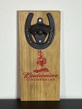 Budweiser Wall Mounted Bottle Opener cast iron horseshoe beer Clydesdales wood
