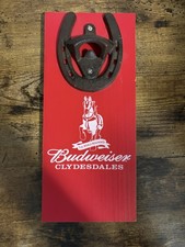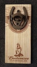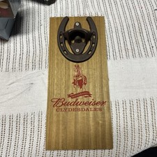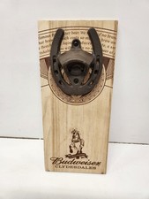 Budweiser Wall Mounted Horse Shoe Bar Bottle Opener Clydesdales Wood Backing