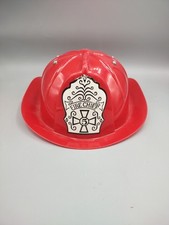 RED Fire Chief HAT Child Size 1960s ADJUSTABLE Made in Hong Kong Vtg