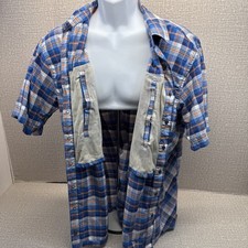 VERTX SHIRT MENS L BLUE PLAID CONCEALED CARRY LINER TACTICAL SHORT SLEEVE
