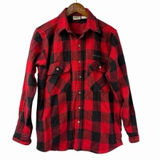 Mankas Inverness Lodge Flannel Shirt Buffalo Plaid M Red Black 100% Cotton VTG