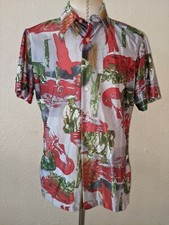 vintage men's button down Hawaiian antique cars shirt old school show Puritan