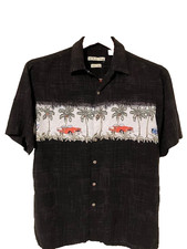 Batik Bay Shirt Mens Large Black Rayon Antique Cars Button Up Short Sleeves