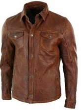 Men’s Shirt Style Vintage Motorcycle Antique Brown Soft Real Leather Jacket Cuir
