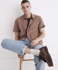 Madewell Mens Variegated Corduroy Easy Short-Sleeve Shirt Antique Plum Sz S